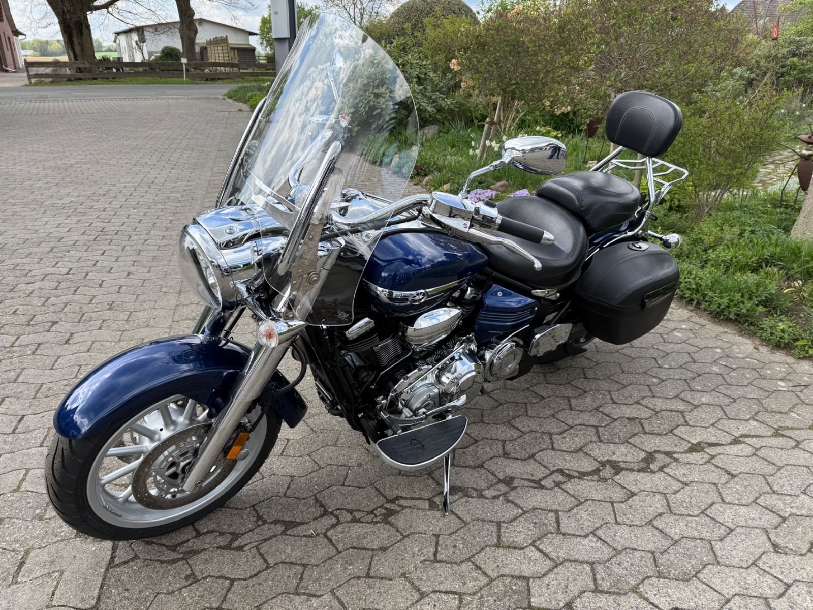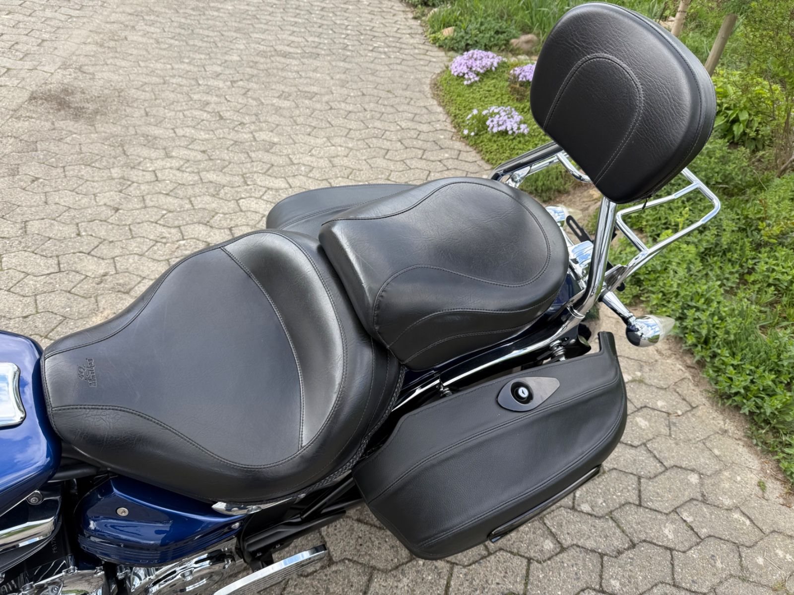 Mustang-Sitzbänke,org.Yamaha-Lederkoffer (von Sattler mit echtem Leder bezogen-besser als neu),abnehmbare Frontscheibe